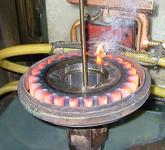高周波焼入加工は、鉄鋼材料で造られた部品の必要部分のみを瞬時の加熱と急冷により焼入れ硬化させる熱処理です。
